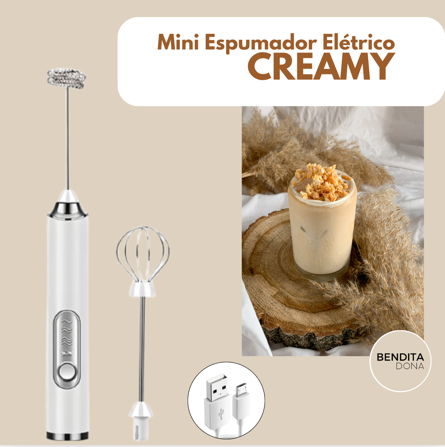Apresentamos o Mini Espumador Elétrico - Creamy, o segredo dos amantes de bebidas incríveis. Compacto, potente e recarregável, ele transforma qualquer preparo em uma experiência profissional.